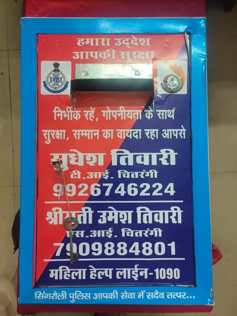 वरिष्ठ अधिकारीगणो के इसी आदेश /निर्देष के पालन में थाना प्रभारी चितरंगी व्दारा एक नवाचार किया गया है । जिसके अन्तर्गत दिनांक 05/07/2025 को माननीय मत्री.महोदय म.प्र. शासन श्रीमती राधा सिह की मेधावी छात्राओ के पुरस्कार समारोह मे के कार्यक्रम के दौरान थाना प्रभारी चितरंगी व्दारा महिला सुरक्षा के संबंध में शासन एवं मध्य प्रदेश पुलिस व्दारा किये जा रहे प्रयासों से कार्यक्रम मे उपस्थित छात्र,छात्राओ,महिला शिक्षिकाओ एवं महिला कर्मचारियो को अवगत कराया गया । जिसमे कार्यक्रम मे उपस्थित छात्राओ/कामकाजी महिलाओ को महिला उर्जा डेस्क ,सी बाक्स पोर्टल ,महिला हल्पलाईन नम्बर 1090 एवं अन्य योजनाओ के विषय में विस्तर पूर्वक अवगत कराया । इसी क्रम मे थाना प्रभारी चितरंगी व्दारा नवाचार के रूप मे एक लेटर बाक्स विद्यालय कैम्पस में स्थापित किया ,उक्त लेटर बाक्स पर जिस पर थाना प्रभारी ,महिला पुलिस अधिकारी एवं महिला सुरक्षा से संबधित फोन नम्बर अंकित है ।स्कूल कैम्पस मे स्थापित लेटर बाक्स के उपयोग के बारे मे थाना प्रभारी चितरगी व्दारा बताया गया कि अधिकांश छात्राए/कामकाजी महिलाये लोक लाज के भय से ,एफ.आई.आर कराने के भय से ,मिडिया मे नाम आने के भय से अन्य कारणो स्वयं के उपर हो रही छेडखानी ,फब्तियो ,अत्याचार,को सहन करती रहती है । जिसके कारण कुंठा एवं अवसाद ग्रसित हो जाती है जिसका उनके विद्यार्थी जीवन, निजी जीवन एवं सामाजिक जीवन पर अत्यन्त विपरीत प्रभाव पडता है ।उक्त पत्र पेटिका में डाला गया प्रत्येक पत्र जो कि थाना प्रभारी अथवा महिला पुलिस अधिकारी व्दारा स्वयं खोला जाकर पढा जावेगा,प्राप्त पत्र का शीघ्र एवं वैधानिक निराकरण किय़ा जावेगा जिसमें किसी भी शिकायतकर्ता का नाम सार्वजनिक नही किया जायेगा और यदि कोई शिकायतकर्ता बिना अपना नाम डाले गोपनीय शिकायत करता है तो उसका भी विधि संगत निराकरण किया जावेगा ।समस्त छात्राओ,महिला शिक्षिकाओ एवं महिला कर्मचारियो से भय मुक्त होकर अध्ययन /अध्यापन कार्य को सुचारू रूप करने हेतु थाना प्रभारी चितरंगी व्दारा आश्वासन दिया गया । फिलहाल कस्बा चितरंगी के स्कूल/कालेज मे ही इस प्रकार की पत्र पेटिकाए स्थापित की गयी है आवश्यकतानुसार थाना क्षेत्र के अन्य स्थानो पर लगायी जावेगी ।