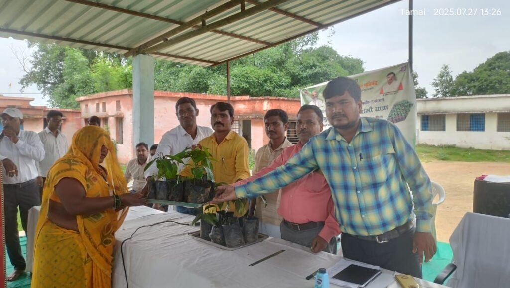 मध्यप्रदेश जन अभियान परिषद द्वारा पूरे प्रदेश मे प्रत्येक ब्लाको मे चयनित आदर्श ग्राम मे नावंकुर सखी हरियाली यात्रा महोत्सव के रूप मे कार्यक्रम कराया जा रहा है उसी के तहत चितरंगी विकास खंड के बगदरा सेक्टर के अंतर्गत चयनित आदर्श ग्राम पड़री खुर्द मे आज विकास खंड समन्वयक विश्वनाथ रैदास के मार्गदर्शन मे नवांकुर संस्था केपी बैस सेवा समिति एवं ग्राम विकास प्रस्फूटन समिति पड़री खुर्द के सयुक्त तत्वाधान मे कार्यक्रम आयोजित कराया गया जिसमे मुख्य अतिथि के रुप मे भाजपा मंडल अध्यक्ष गंगा सागर बैस,कार्यक्रम की अध्यक्षता सरपंच प्रतिनिधि मुन्नर सिंह,कार्यक्रम मे विशिष्ट अथिति के रूप मे पिछड़ा वर्ग भाजपा बगदरा के अध्यक्ष फूल सिंह, ब्लाक समन्वयक विश्वनाथ रैदास,दिलीप सिंह,रोजगार सहायक रमाकांत प्रसाद बैस के उपस्थति मे हुआ जिसमे नावंकुर सखियो को परिचय पत्र प्रदान करते हुए पौधा भी वितरण किया गया साथ हि साथ मंच पर मौजूद ब्लाक समन्यवक ने जन अभियान और नावंकुर सखी अभियान का पुरा बिस्तृत रूप रेखा रखते हुए सखियो को सम्बोधित किया कार्यक्रम के बाद पंचायत मे स्थिति शांति धाम मे नावंकुर सखीओ के माध्यम से दो सौ पौधों का रोपण एक पेड़ माँ के नाम के तहत कराया गया इस पूरे कार्यक्रम मे केपी बैस सेवा समिति के अध्यक्ष उमा शंकर सिंह बैस, प्रस्फूटन अध्यक्ष सावित्री सिंह, पत्रकार दिलीप गुप्ता, सामाजिक कार्यकर्ता राम रहिस बैस,अजय बैस,महात्मा सिंह,हुब्बलाल बैस ,सरोज,रेखा, बिन्दु, सविता,राजपति देवी बैस कमलावती,सुधा देवी,शांति बैस,सहित सैकड़ो के संख्या मे नावंकुर सखिया और ग्रामीण जन मौजूद होकर कार्यक्रम के साक्षी बने साथी ही साथ सभी को वृक्षारोपण, प्रकित सुरक्षा,को लेकर उन्हे संकल्प भी दिलाया गया वही कार्यक्रम मे पधारे अतिथिओ का रोजगार सहायक द्वारा आभार ब्यक्त किया गया